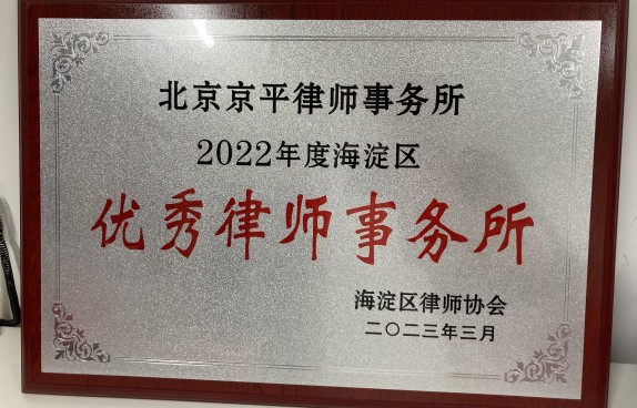 北京京平律師事務(wù)所榮獲2022年度海淀區(qū)“優(yōu)秀律師事務(wù)所”稱號